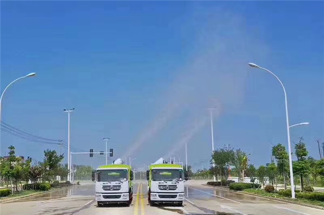 2020款國六東風多利卡D9多功能抑塵車。全新車型,作業現場圖片。可根據不同客戶用車需求加裝30米,40米,50米,80米噴霧機組。