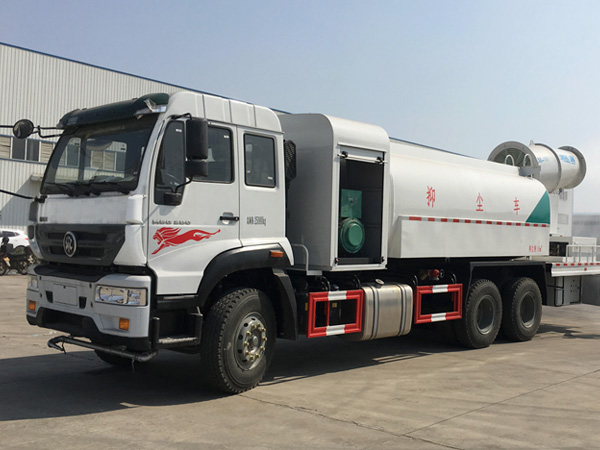 風送式噴霧機的原理是在液泵噴水后,利用風機將水噴灑出去,能噴灑120米遠、60米高,向天空噴灑水霧,達到抑制揚塵、綠化除塵等效果。這種霧炮正好治理治理PM2.5超標的最佳環(huán)保利器。施工運輸車輛、挖掘土方設備出工地前必須作除泥除塵處理,嚴禁將泥土、塵土帶出工地。這套裝置不但結構簡單,除塵覆蓋面大,除塵效果好,而且對水質要求低,可以直接利用雨水等回收水,從而大幅降低了投入成本。