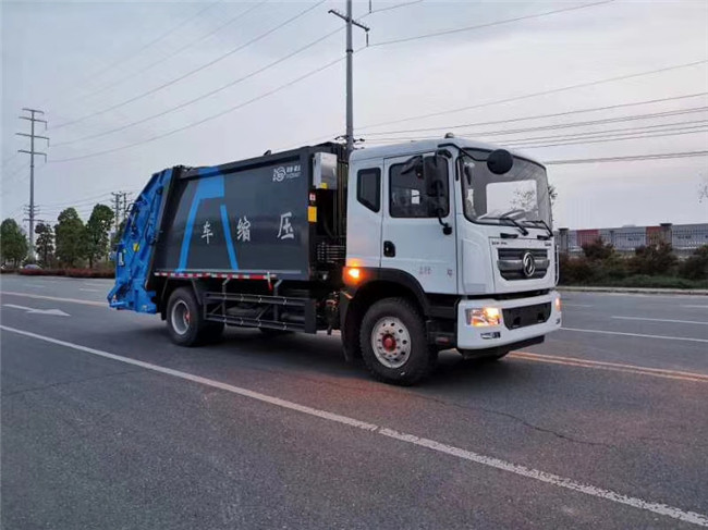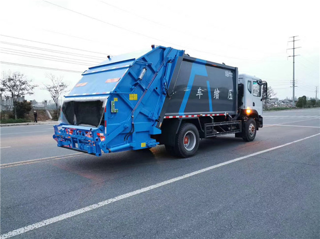 傍晚時(shí)分拍攝一組東風(fēng)多利卡D9垃圾壓縮車,靚麗的外表、新穎的顏色邀您共賞: