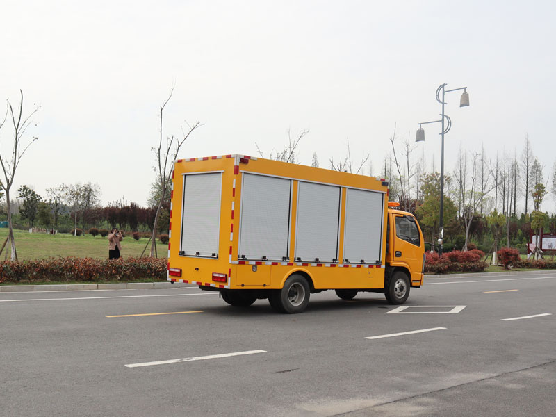 選裝配置:選裝行李架、爬梯、車頂工作臺;選裝不同形狀、結(jié)構(gòu)的警示燈;選裝中隔斷(可選擇開門)、車身兩側(cè)可選開上掀門、盲窗、側(cè)開門;花紋鋁板;加裝設備工具柜、配電箱、發(fā)電機組、水泵、電焊機、空壓機等線路安裝外接電源系統(tǒng)、(室內(nèi)燈光照明、探照燈、高桿照明燈等);繞線盤,還可根據(jù)用戶不同需求加裝不同的維修搶險設備、車身制作專用圖案或標識。