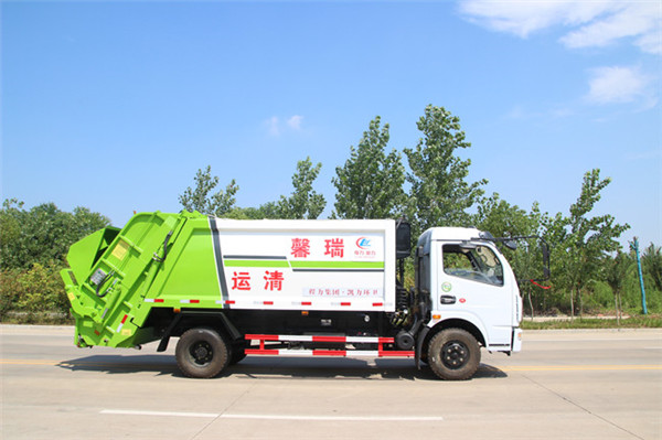 壓縮式垃圾車采用機電液一體化技術(shù),采用機、電、液聯(lián)合自動控制系統(tǒng),通過車廂、填裝器、推鏟等專用裝置,實現(xiàn)垃圾裝入、壓碎或壓扁、強力裝填,最后將垃圾壓實擠入車廂,運到目的地進行自動推動卸載。垃圾收集方式簡便、高效、具有反復壓縮及蠕動壓縮等功能,壓縮比高,裝載質(zhì)量大,作業(yè)自動化,動力性、環(huán)保性好,整車利用效率高,壓縮車整車為全密封型,自行壓縮、自行傾倒、壓縮過程中的污水全部進入污水廂,較為徹底的解決了壓縮車運輸過程中的二次污染的問題。