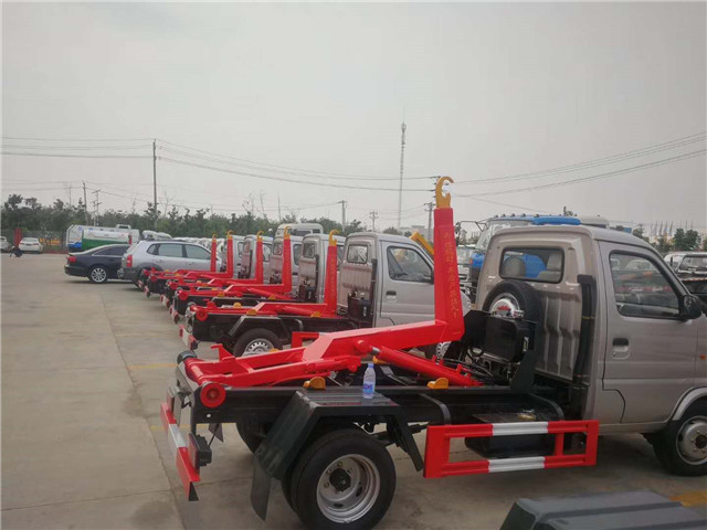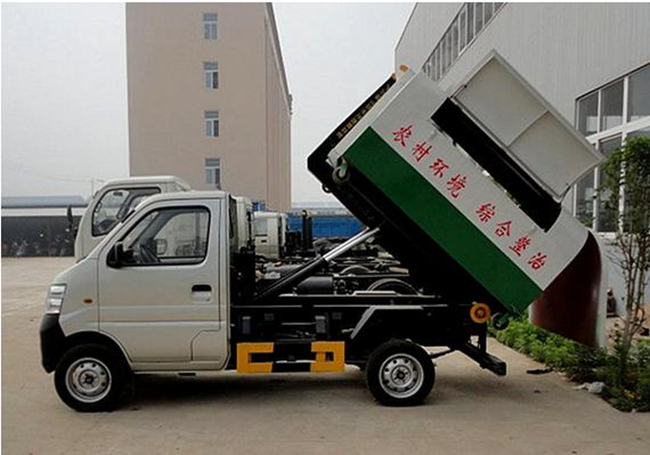 3.車(chē)廂可卸載式垃圾車(chē),又稱勾臂式垃圾車(chē)、拉臂式垃圾車(chē)。該車(chē)廣泛適用與城市街道學(xué)校垃圾處理,可一車(chē)配備多個(gè)斗,各個(gè)垃圾點(diǎn)放置多個(gè)垃圾斗,帶自卸功能,液壓操作,方便傾倒。該車(chē)的箱體部分完全由液壓系統(tǒng)來(lái)控制,在平日里可將車(chē)載垃圾箱放置到各個(gè)垃圾收集站,待垃圾收集滿后,該車(chē)可直接開(kāi)赴至垃圾站,通過(guò)液壓系統(tǒng)的操控,可將垃圾車(chē)后座上加裝的勾臂放下,掛住站內(nèi)垃圾箱前端的連接點(diǎn),將垃圾箱拉至車(chē)體的后座上,此時(shí)即可啟動(dòng)車(chē)輛,將垃圾運(yùn)送至垃圾處理站內(nèi),進(jìn)行自卸式傾倒。
