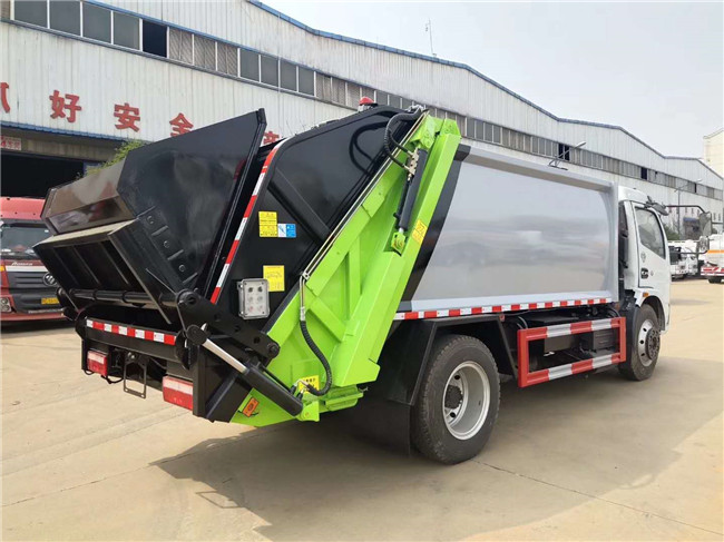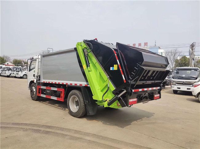 東風小多利卡D6后裝壓縮式垃圾車,玉柴115馬力國五發動機,萬里楊五檔箱,7.00R16鋼絲胎,軸距3308mm,正規東風股份GB7258-2017新規底盤;上裝采用Q345高強度錳鋼板制作,廂體容積:6立方米,可裝15立方散裝垃圾,合肥快速液壓泵,大流量快速手自一體多路換向閥,可編程PLC電控系統,卸料時帶一鍵循環系統,司機不下車可完工卸料工作。尾部選裝翻轉斗裝置,斗內帶掛240L國標方形塑料桶裝置,選裝遙控器操作。