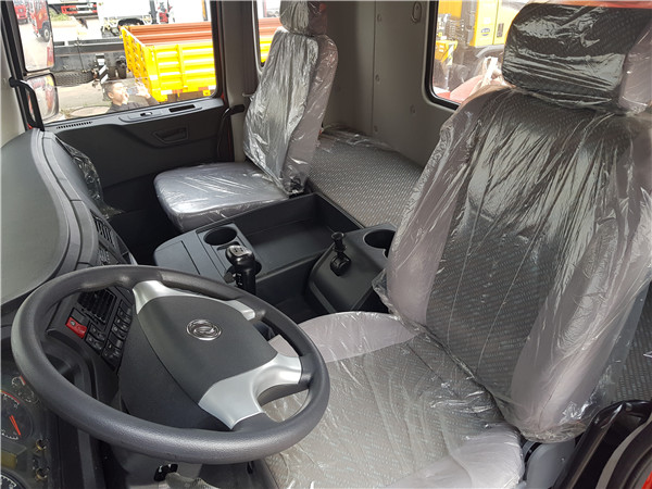 玉柴 290 馬力發(fā)動機(jī),東風(fēng) T5 駕駛室,帶氣囊座椅、遙控中控(一體式)、四鎖合一,帶行駛記錄儀,2150+4400+1350mm 軸距,陜齒 9 檔帶高低檔變速箱,帶同步器、取力器,前橋5.5 噸后橋11.5噸,“雙卡加強(qiáng)型”平衡懸架, 300mm直通三層局部四層車架,帶連接板,11.00R20 鋼絲胎,原廠空調(diào);