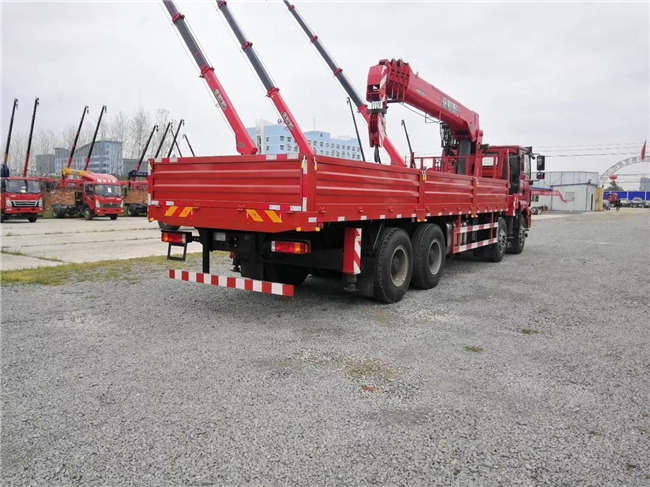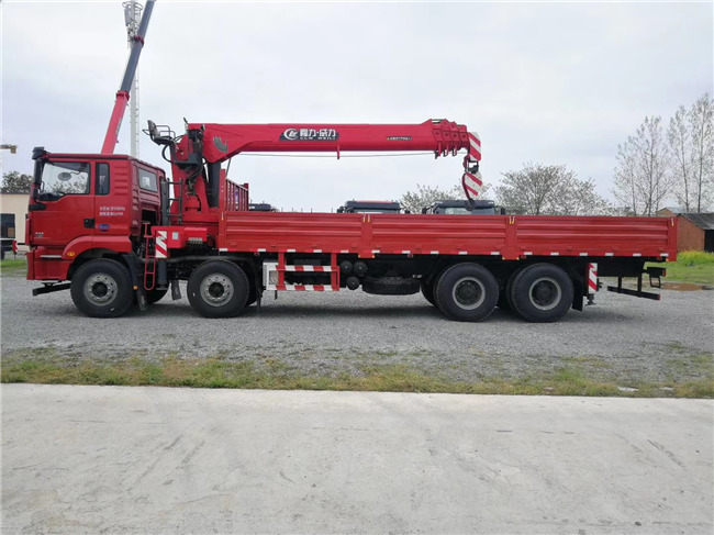 陜汽德龍新M3000前四后八14噸隨車吊整車配置簡述:德龍新M3000駕駛室,濰柴340馬力發動機,陜齒12檔變速箱,前橋7.5噸,后橋16噸,12.00R20鋼絲胎,軸距2100+4575+1400,300MM三層直通大梁,400L鋁合金油箱,ABS、行車記錄儀、原廠空調、原廠取力器、遠程油門,8400/8200*2450+600MM。上裝程力威力14噸5節臂吊機,舉升高度19米,工作半徑17.5米。