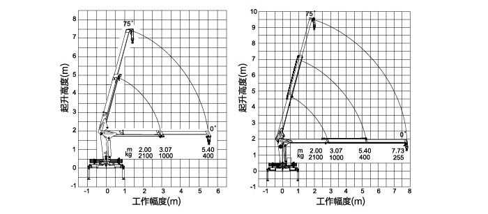徐工2噸隨車吊吊機尺寸及起重參數,吊臂節數可選二節臂或三節臂,最大起重2噸,兩節臂全伸5.4米可起吊400kg,三節臂全伸7.73米可起吊255kg,吊機高度(即吊臂最上方到吊機回轉臺下方)為2米,吊機標配徐工牌前液壓支腿,不伸出支腿兩邊跨距為1874mm,全伸支腿跨距為3024mm,徐工2噸二節臂水平方向起重參數為:5.4米起吊400kg,3.07米起吊1000kg,2米起吊2100kg,三節臂水平方向起重參數為:7.73米起吊255kg,5.4米起吊400kg,3.07米起吊1000kg,2米起吊2100kg。