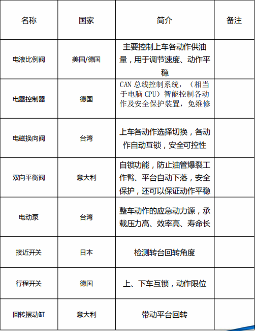 主要配套液壓、電器件:平衡閥、控制器等均為進口件,全比例系統配 座椅。