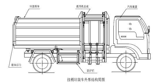 一、概述程力專用汽車掛桶式垃圾車(以下簡稱垃圾車)是用于城鎮(zhèn)內(nèi)的垃圾收集、轉(zhuǎn)運(yùn)、卸料作業(yè)的專用車輛。該車是由汽車底盤、自卸油缸、提升機(jī)總成、頂蓋(選裝)、附車架、垃圾箱體等組成。該車操作由液壓控制系統(tǒng)來完成,控制方式可以為手動或電氣控。該車主要用于城鎮(zhèn)垃圾的垃圾收集、轉(zhuǎn)運(yùn)和卸料。操作開提升控制閥將垃圾桶隨提升機(jī)向上升起并翻轉(zhuǎn)傾斜,桶內(nèi)垃圾被倒入車廂內(nèi)完成垃圾單次裝載,反向操作提升控制閥,垃圾桶隨提升機(jī)而放下;完成垃圾裝載后再進(jìn)行傾卸時,操作自卸控制閥,垃圾箱繞后翻轉(zhuǎn)軸傾斜體舉,箱體后門打開,垃圾傾卸出箱體;起該車由液壓控制系統(tǒng)來完成該車的提升機(jī)的上升和下降及垃圾的自卸功能,降低了工人的勞動強(qiáng)度和改善了工作環(huán)境。該垃圾車的收運(yùn)方式是目前國內(nèi)泛采用的垃圾收集轉(zhuǎn)運(yùn)方式,其專用裝置的功能均以汽車發(fā)動機(jī)為動力,通過液壓機(jī)構(gòu)手動或電控、氣控來實現(xiàn)。車輛的箱體采用優(yōu)質(zhì)炭鋼板全密封焊接結(jié)構(gòu),具有強(qiáng)度高、重量輕,防塵、防溢不產(chǎn)生二次污染等優(yōu)點。垃圾車整車基本性能與原底盤車相同,用戶請參閱原底盤車使用手冊。本用說明書僅介紹專用改裝部分的有關(guān)操作、檢查和維修保養(yǎng)。在使用車輛前,我們強(qiáng)烈要求您能夠通讀本說明書,并對其中的操作程序做到得心應(yīng)手。我廠對產(chǎn)品將會進(jìn)一步改進(jìn)。產(chǎn)品的改進(jìn)、性能的提高、結(jié)構(gòu)的不斷完善恕不另行通知,從而有某些說明不適用于您的特定車輛,敬請諒解。
